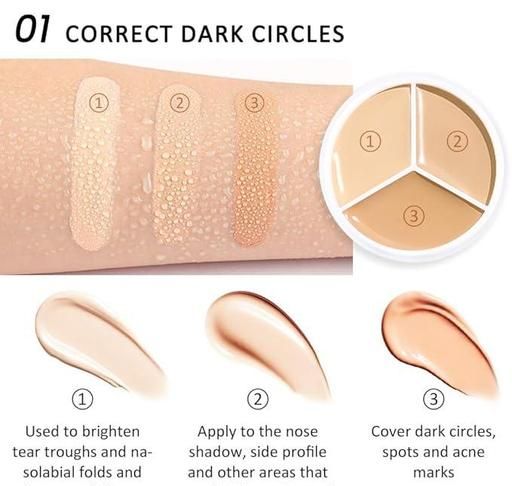 Name: Professional 3 In1 Concealer & 3 Pcs Fingeer Puff combo set | Soft Blender for Full Coverage Hides Blemishes, Dark Circles & spot (Multicolor)