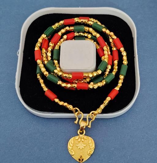 Name: One Gram Gold Plated Corel Red Green Beads Necklace Chain Mala With Doller Heart Pendent 28 Inch Long For Women