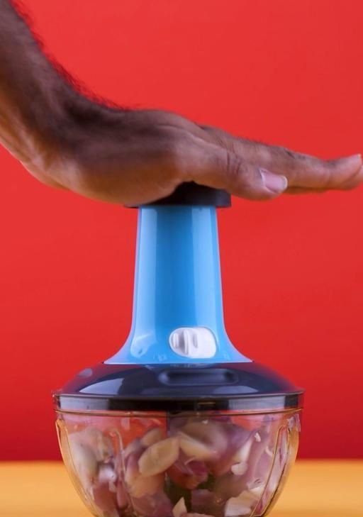 Name: halston Premium Manual Food Chopper 650ml, Manual Hand Press Chopper With Super Sharp Blades To Cut Onion, Tomatoes, All Vegetables, All Fruits, Ultra Durable Chopper For Kitchen (Sky Blue and Muticolor)
