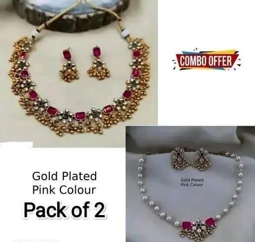 Name: Combo jewellery(Gold Plated Green-Pink Diamond),choker,necklace,jewellery set,indian wedding jewellery set,Maangalyam/Murukku,south,indian,maharastrian,highquality set for women girls.