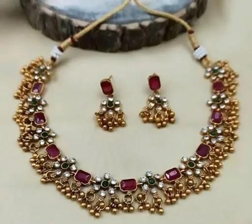 Beautiful Combo jewellery(Gold Plated Green-Pink Diamond),choker,necklace,jewellery set,indian wedding jewellery set,Maangalyam/Murukku,south,indian,maharastrian,highquality set for women And girls
