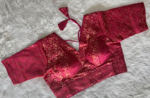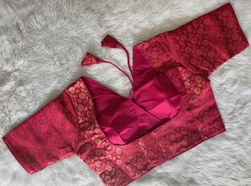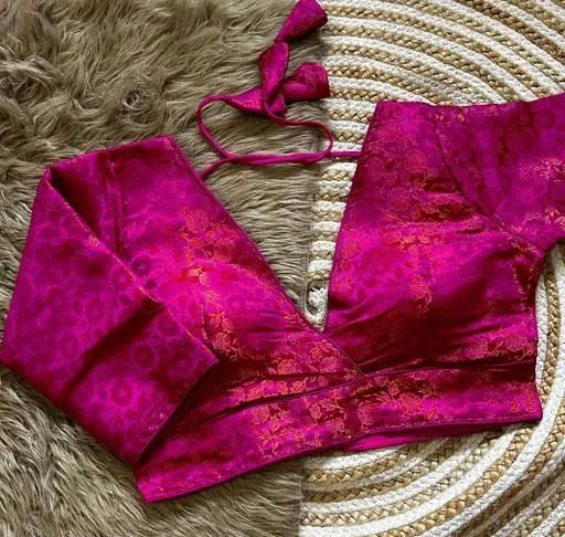 Name: Sanemi Fashion Stylish Silk Pink Color Blouse with V-Neckline and Embroidered Floral Motif , Short Sleeves, With Adjustable fit Readymade Blouse for women||Partywear Blouse For Women ||Short Sleeve Blouse