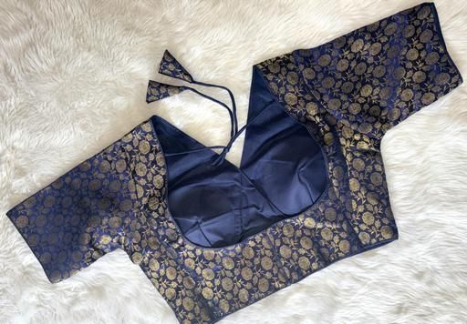 Name: Sanemi Fashion Stylish Silk Navy Blue Color Blouse with V-Neckline and Embroidered Floral Motif , Short Sleeves, With Adjustable fit Readymade Blouse for women||Partywear Blouse For Women ||Short Sleeve Blouse