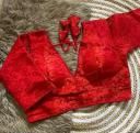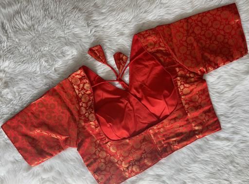 Name: Sanemi Fashion Stylish Silk Red Color Blouse with V-Neckline and Embroidered Floral Motif , Short Sleeves, With Adjustable fit Readymade Blouse for women||Partywear Blouse For Women ||Short Sleeve Blouse
