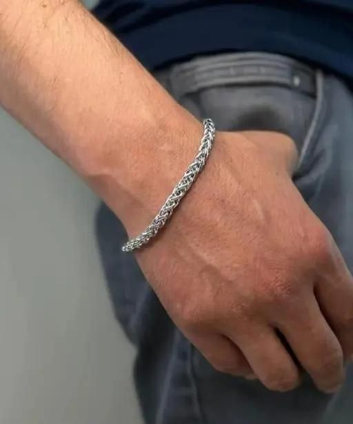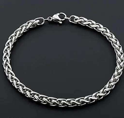 Classy Men Silver Plated Chain Bracelet || Men's High Quality Stainless Steel Twisted Bracelet (Silver)