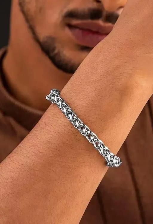 Name: AC_Classy Men Silver Plated Chain Bracelet || Men's High Quality Stainless Steel Twisted Bracelet (Silver)