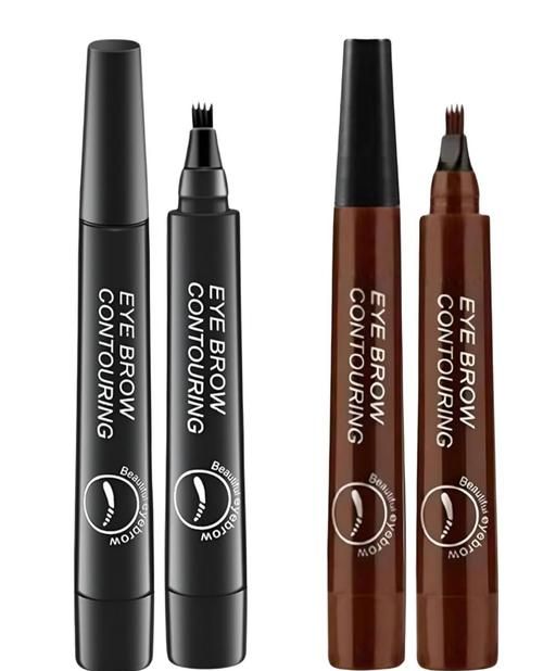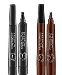 Eyebrow Liquid Makeup Pen with 4 Micro-Fork Tip Black & Brown, Waterproof, Long-Lasting & Smudge Proof, Microblading Eyebrow Pen, Stays on All Day, ( Black , Dark Brown )Pack of 2