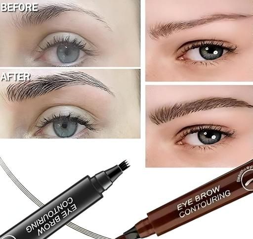 Name: Eyebrow Liquid Makeup Pen with 4 Micro-Fork Tip Black & Brown, Waterproof, Long-Lasting & Smudge Proof, Microblading Eyebrow Pen, Stays on All Day, ( Black , Dark Brown )Pack of 2