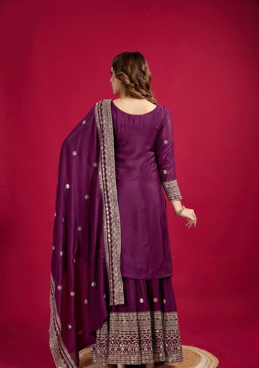 Name: Presenting New Chinnon Silk With Heavy Embroidery Sequence Work Top-Plazo And Dupatta Set With Fully Stitched Ready To Wear Collection