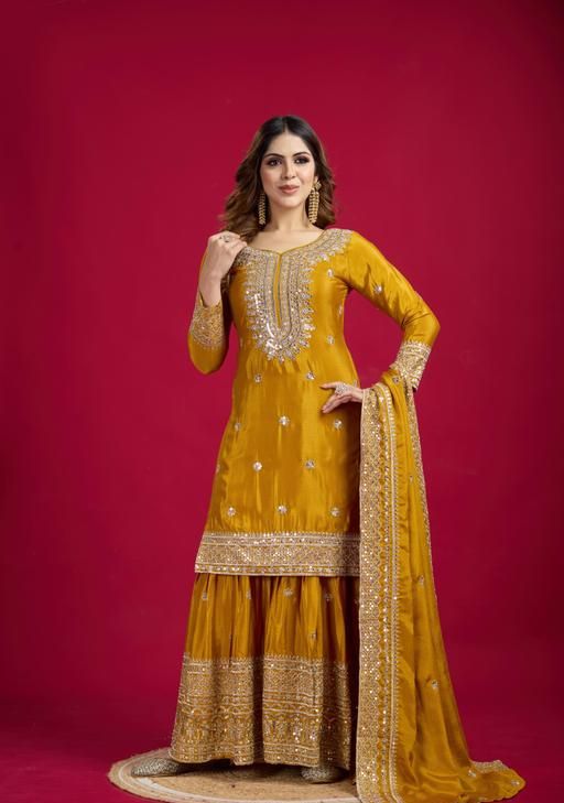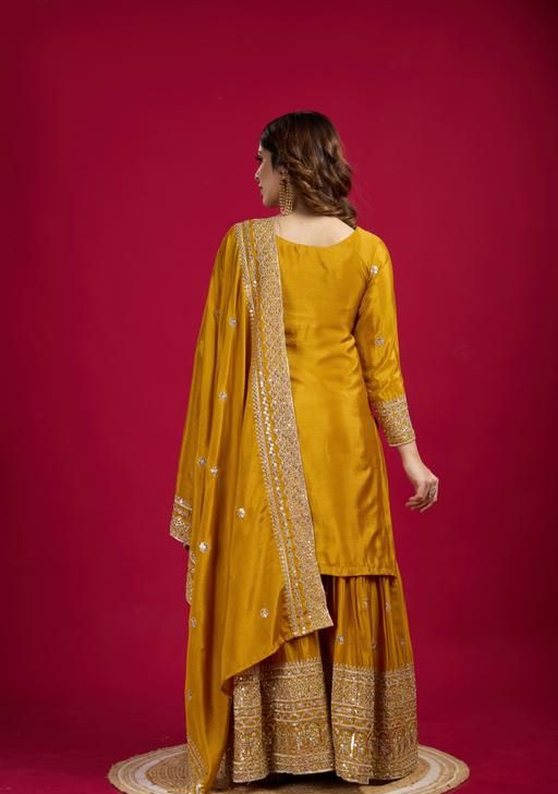 Name: Presenting New Chinnon Silk With Heavy Embroidery Sequence Work Top-Plazo And Dupatta Set With Fully Stitched Ready To Wear Collection