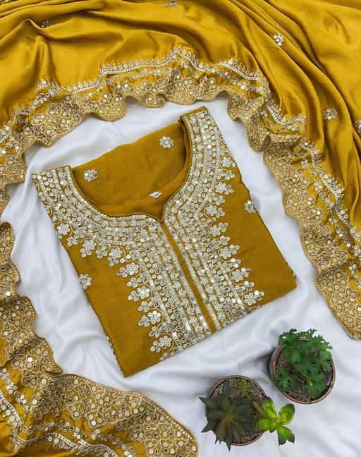 Top Fabric :Pure Heavy Chinnon Silk With Embroidery And 5mm Sequence Work With Full Sleeves