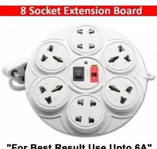 Name: Round Extension Cord White Plastic Extension Board with 2.5m Long Wire & Universal Fit Design 8 Socket Extension Board