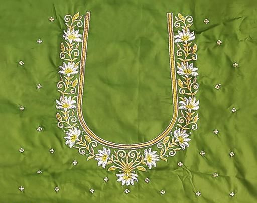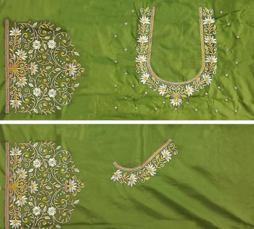 Name: Unstitched Art Silk Blouse Material Embroidered | Latest Aku Pattu Fabric Work for Wedding | Wedding Season Special | Traditional Aku and Half Pattu Pattu Fabric | Jari Embroidery with Stone Work | Aari Work |