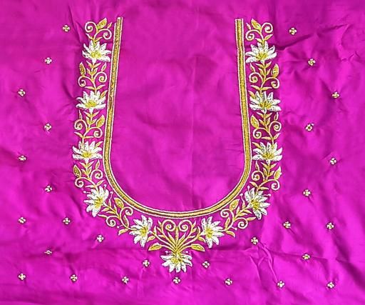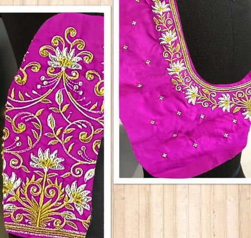 Name: Unstitched Art Silk Blouse Material Embroidered | Latest Aku Pattu Fabric Work for Wedding | Wedding Season Special | Traditional Aku and Half Pattu Pattu Fabric | Jari Embroidery with Stone Work | Aari Work |