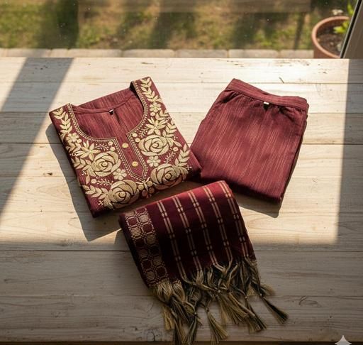 This is a set of Cotton Kurti with Pant. It consist of a very fancy designed Striped Cotton Kurta with a printed Pant or Trouser of the same colour. You can wear it daily for your office or your regular home or office work. It is a made in India product which is very comfortable to wear that appeals to the eyes and feels good to the skin as well. We hope you like the product and please do share your valuable feedback so that we can keep improving our products. Thank you. Have a nice day