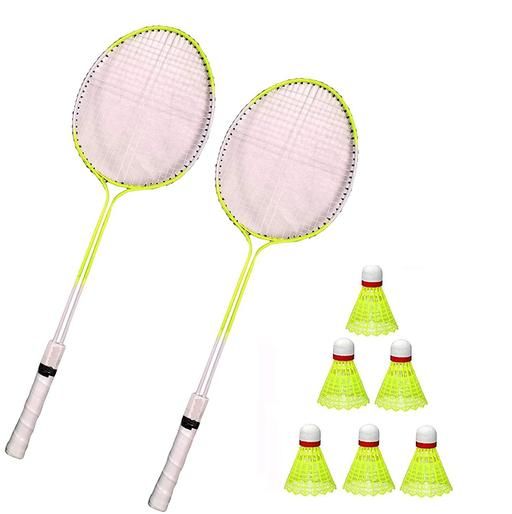 MINESFIT Steel Double Shaft Badminton Racquet with 6 Nylon shuttles - Set of 2
