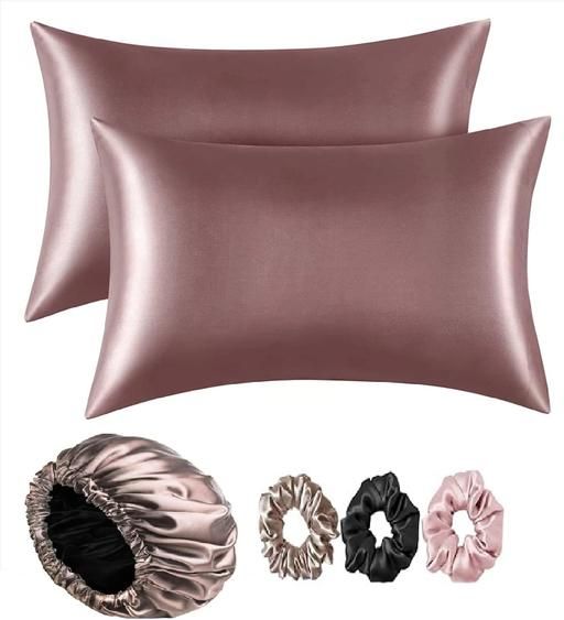 Name: Satin Bonnet for Curly Hair with Silk Satin Pillow Covers and Scrunchies | Silk Bonnet for Hair|Best Gift Combo of Pack of 2 Satin Pillowcases 3 Silk crunchies Adjustable HairCap