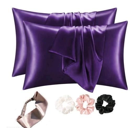 Name: Satin Silk Pillows Cover Pillows Cases For Hair And Skin Anti Ageing Pack Of 2 With Free 3 Scrunches and 1 Hair Band