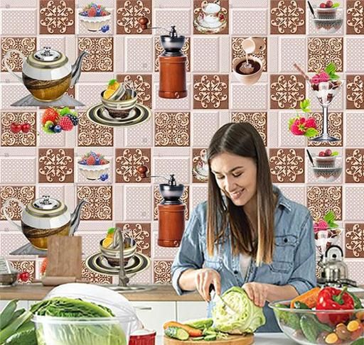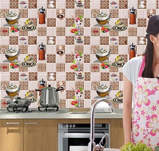 Self Adhesive Wallpaper Kitchen Wallpapers Kitchen Tile Wallpaper | Kitchen Wallpaper Rolls For Kitchen Decoration Wall Sticker for Kitchen Wallpaper for wall (40 X 210 CM) wallpaper stickers for kitchen home decor living room Bed room Studio Kids room