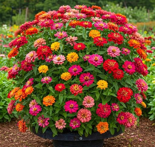 Welcome to our seed's store. Zinnias are easy-to-grow annual flowers that thrive from seed to bloom with minimal effort, making them perfect for both novice and experienced gardeners. Start by selecting varieties based on height (dwarf to tall), bloom type (single, double), and color. Seeds can be sown directly outdoors after the last frost when soil temperatures reach at least 70°F (21°C), or indoors 4-6 weeks earlier in trays. Plant seeds about ¼ inch (6 mm) deep and space them 6-12 inches apart in rows spaced 12-18 inches. Zinnias germinate quickly, typically within 5-10 days. They require full sun and well-drained soil, and they bloom continuously from summer until the first frost. Water regularly but avoid wetting the foliage to prevent disease. Deadheading spent blooms encourages more flowers. Zinnias attract pollinators like bees and butterflies, making them excellent for gardens and cut-flower arrangements.
