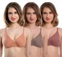 Women's Cotton Blend Non-Padded Wirefree T-Shirt Bra Pack of 3 Multicolor