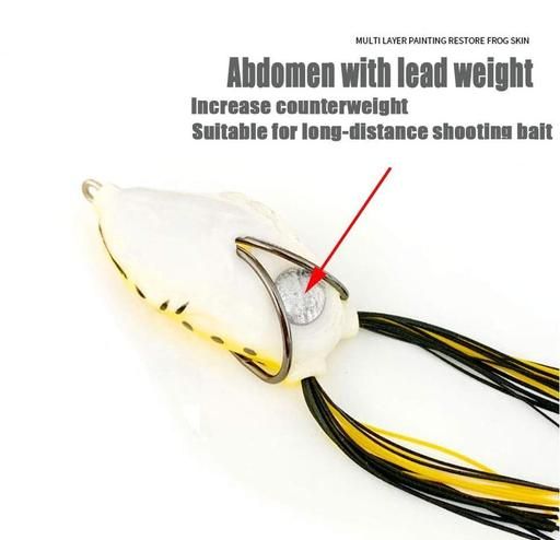 3 D Stereoscopic Eyes: Our fishing frog has 3D stereoscopic eyes, which make the fish look more vivid and lifelike so as to attract the target fish. Sharp Nickle Treble Hook: The hooks of our topwater bass lures are incredibly strong, and can easily pierce the fish, and the sharp nickel hook makes it hard for fish to escape Soft Frog Body. The bass lures consist of a super-soft hollow body that creates lifelike swimming actions in water. Soft bodies help drain water quickly for better hook-up ratios. Perfect 45° Angle Sitting: The center of gravity for frog baits is constantly checked to ensure the best angle for sitting inside the water, which helps with hookup success. Perfect Coated Weight: Boasts a special-shaped weight with a finish coating for zero hook interference during the strike and to help anglers attract a bigger catch. Life-like Action: High-resolution body detail and almost real swimming actions replicate an actual frog flawlessly. If you want to get some frogs to try out this season, these are your lures!