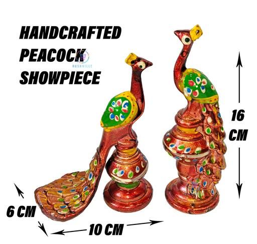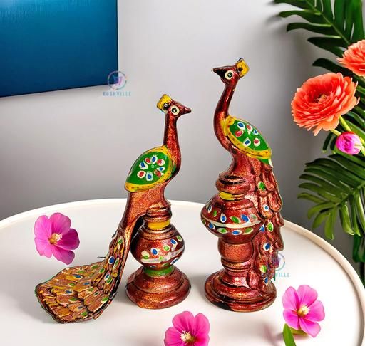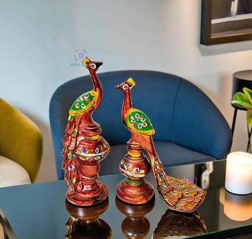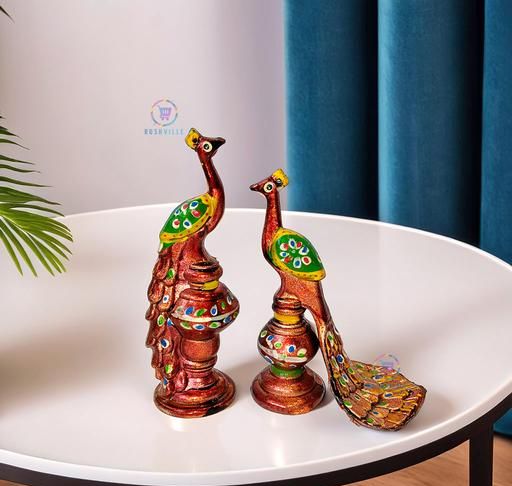 Name: Rajasthani Style Paper Mache Peacock Home Decor Showpiece |Handcrafted Peacock Idol for Home Decor and Pooja Room|Set of 2 (Red)