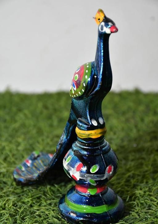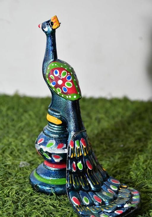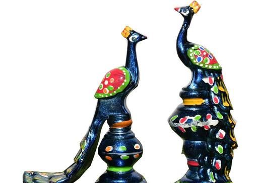 Name: Rajasthani Style Paper Mache Peacock Home Decor Showpiece |Handcrafted Peacock Idol for Home Decor and Pooja Room|Set of 2 (Blue)