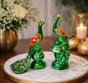 Add a touch of vibrant tradition to your home with this exquisite Rajasthani Style Paper Mache Peacock Showpiece. Handcrafted by skilled artisans, this stunning pair of peacock idols is a beautiful blend of art and culture, making it a perfect addition to your home decor or pooja room. peacock, more set,
