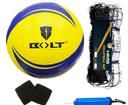 Name: BOLT Volleyball Twister with Net 360N, Pump and Wrist Band /Rubberized Moulded/Suitable for Outdoor and Indoor Surfaces/for Men Women and Kids/Color Yellow Blue Size-4 (Ball+Net+Pump+WristBand)