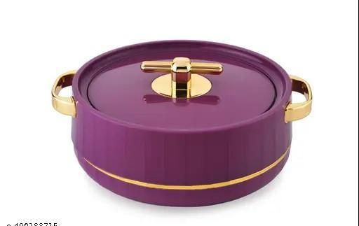 brings to you an aesthetically designed vibrant range of casseroles to end your worries of keeping your food warm during the dinner. Being an absolute marvel of design elegance, the double walled casseroles are made of best quality food grade material. It helps maintain the original temperature of the food, hot or cold, for long. The inner mirror finished liner parts are fabricated out of a non-magnetic stainless steel seat. The plastic outer body and lead components are molded out of virgin food grade plastic polymers which gives a sturdy and beautiful finish. With a unique glazed finish that gives a sophisticated look, is one of a superlative essential in your kitchen collections. Scientifically measured insulation properties keep food warm and fresh just as home packed food is expected to be.