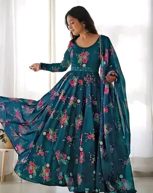 Name: Flower Print Long Kurti With Dupatta (No Bottomwear)