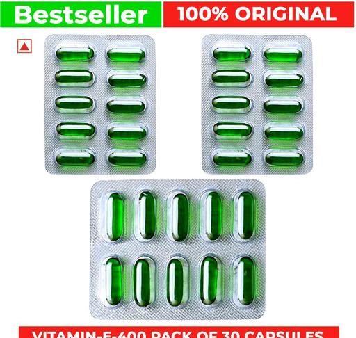Name: Vitamin E 400 Mg capsules For Face and Hair, Antioxidant Support and Immunity Booster, Controls Wrinkling, Skin Dehydration, Glowing And Radiant skin Vitamin E for Every one Pack of 30 capsules