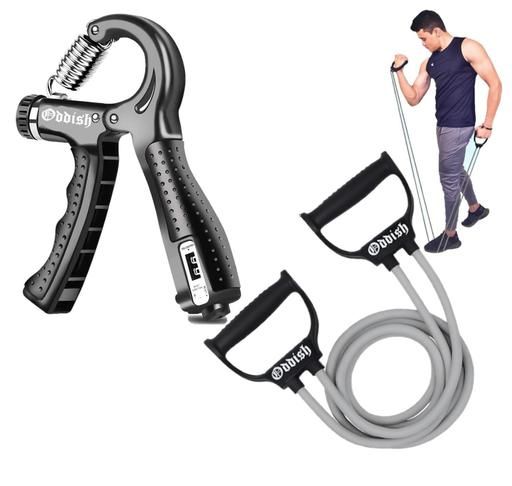 Upgrade your fitness routine with the ODDISH Hand Grip Strengthener & Resistance Toning Tube Combo, designed for complete upper body training at home, gym, or on the go. The adjustable hand gripper offers 10–60 kg resistance for progressive forearm, wrist, and grip strength enhancement—ideal for athletes, musicians, and rehab users. The heavy-duty resistance tube with ergonomic handles targets arms, shoulders, chest, and back muscles, delivering a full-body workout without bulky equipment. Compact, portable, and built with premium anti-slip materials, this combo ensures maximum comfort, durability, and results. Perfect for muscle building, toning, strength training, and injury recovery.
