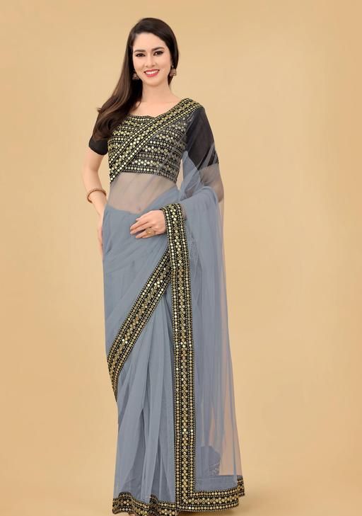 Name: Net Grey Lace border Saree With Blouse