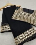 Net Grey Lace border Saree With Blouse