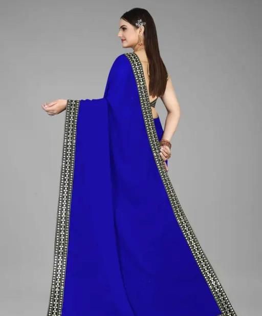 Net Blue Lace border Saree With Blouse