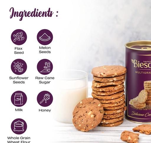 Name: Multigrain Cookies with Flaxseeds, Melon Seeds, Sunflower Seeds, Honey 170g, Premium Handmade Biscuit, No Maida, No Preservatives, Eggless, Healthy Snack