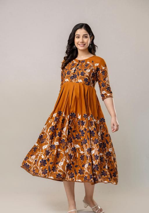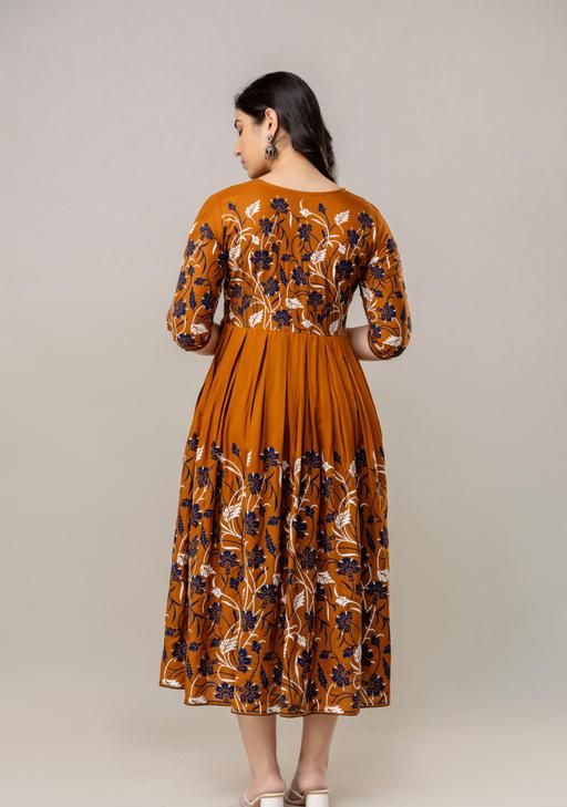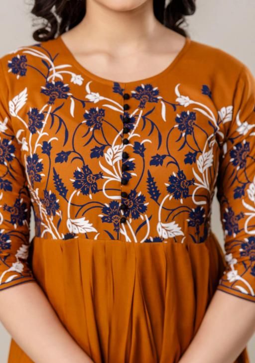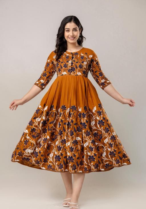 This stylish floral printed anarkali kurta is a stunning, sparkling, trendy, fashion-forward traditional outfit perfect for women who appreciate elegance and comfort. A stylish, modern design that falls just below the calf with a classic round neckline and 3/4 sleeves. Perfect for formal events, weddings, festivals, parties, or traditional gatherings. Abhisarika, Aishani Kurtis, superior Kurtis, Modern Kurtis, Printed Anarkali Kurtis, Flared long kurtas for women, floral anarkali kurtis, anarkali kurtis for women, office kurtas. Aarav kurtis, flossy anarkali.