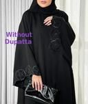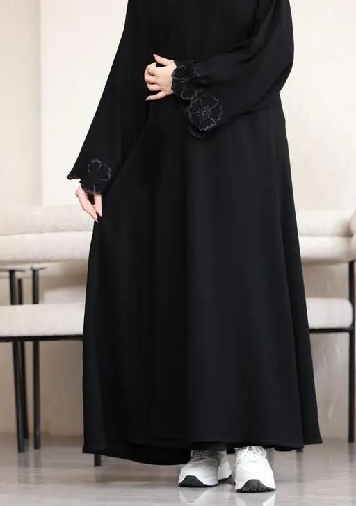 DISCRIPTION : Firdous Fabric Abaya Burqa with WHITE EMBROIDERED SLEEVE This abaya is Free size, and it allows for a comfortable fit for women of different body sizes. You can alter it easily. The option to alter it further adds to its versatility and makes it a convenient choice for many.