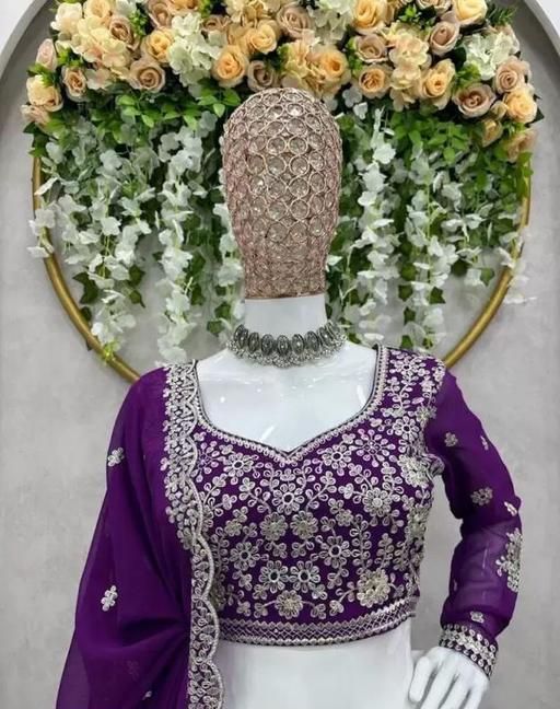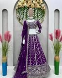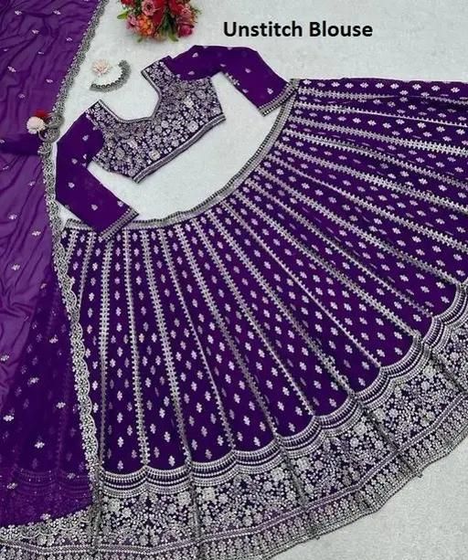 1. Color : The lehenga is a deep, rich purple color, which is often associated with royalty and elegance.