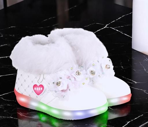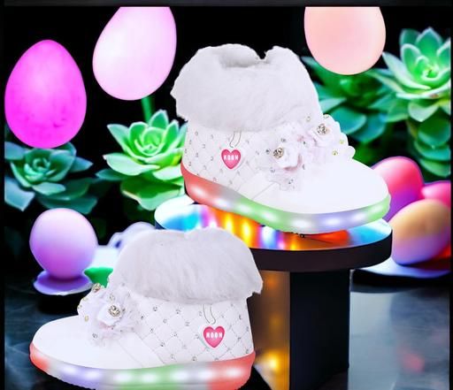 Name: Ladkiyo ke light wale boots Girls Long Neck Led Light Zipped Sneaker/Shoes/Boots with Fur White