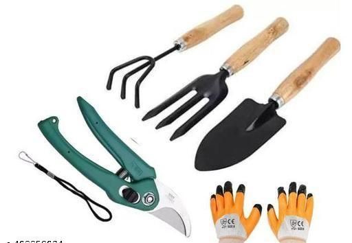 Name: Dani Traders Garden Tool Set Big Trowel, Hand Fork, Hand Rake, Gloves (Pair) & Pruner/Cutter for Gardening Garden Tool Kit Number of Tools: 5