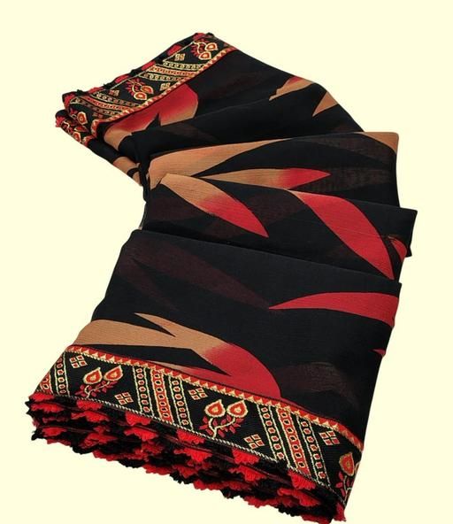 GEORGETTE PATTERN FANCY PRINTED MULTICOLOUR REDBLACKCHIKU SAREE WITH EMBORDERED BORDER