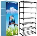EXPOSURE 6 LAYER PVC Pipe COLLAPSIBLE SHOE RACK FRAME ARE MADE WITH PVC PIPE AND BIG CONNECTORS ALSO THEIR SHELF AND COVER ARE MADE WITH NON WOMEN FABRIC, THAT’S MAKE YOUR HOME WELL AND DÉCOR.