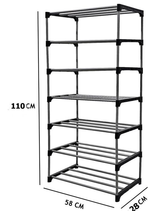 EXPOSURE 6 LAYER PVC COLLAPSIBLE SHOE RACK FRAME ARE MADE WITH METAL COLOUR COATED PIPE AND BIG CONNECTORS ALSO THEIR SHELF AND COVER ARE MADE WITH NON WOMEN FABRIC, THAT’S MAKE YOUR HOME WELL AND DÉCOR.