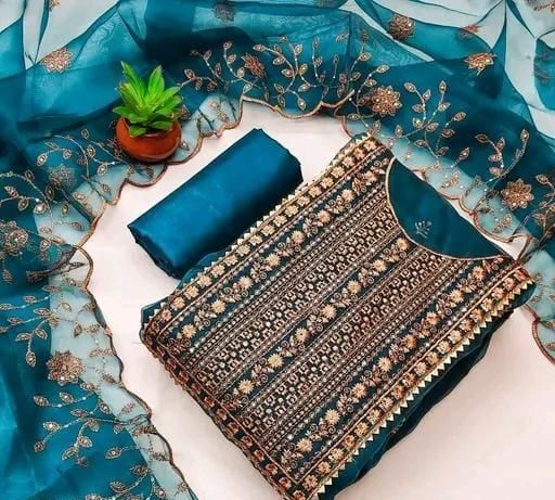Name: trending Unstiched Exclusive Super Best Collections Organza Party Wear Fancy Patiala Pakistani jaipuri designer Stylish Organza embroidered Unstitched Suit With Dupatta Set For Women Suit Material || Salwar Suit Fabric || Party Wedding Wear Suit Material || Ethnic Clothing for Girls