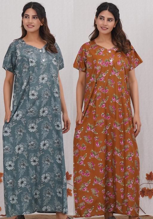 Experience ultimate comfort and style with our brand ”Vardhana” .This nighty gown is made up with 100% pure organic cotton directly crafted from the mill, which gives soft, breathable and luxurious feel. This cotton nighty is available in free size which has (bust:48) and (length:54) that fits to a normal body of every women from L to 2XL.This cotton nightdress has a relaxed fit and also has a side pocket so it stays comfort to your body.
