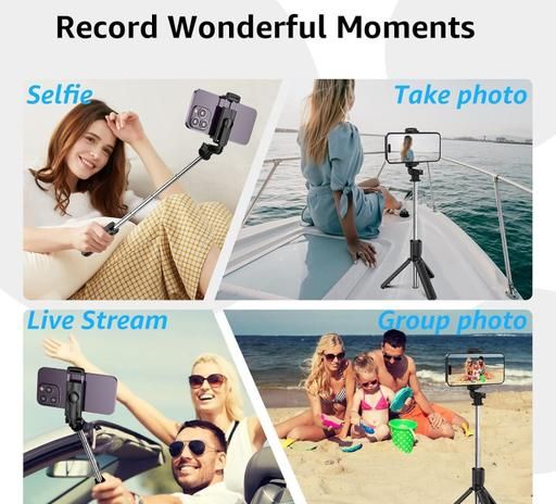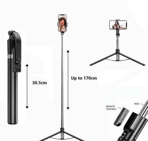 The adjustable telescopic pole extends up to 170cm, giving you wider angles and professional-looking shots. The rotatable phone holder supports both portrait and landscape modes, while the wireless Bluetooth remote allows hands-free shooting from a distance. Lightweight, foldable, and easy to carry, this tripod is compatible with most smartphones and is ideal for everyday use.