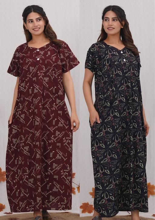 Experience ultimate comfort and style with our brand ”Vardhana” .This nighty gown is made up with 100% pure organic cotton directly crafted from the mill, which gives soft, breathable and luxurious feel. This cotton nighty is available in free size which has (bust:48) and (length:54) that fits to a normal body of every women from L to 2XL.This cotton nightdress has a relaxed fit and also has a side pocket so it stays comfort to your body.
